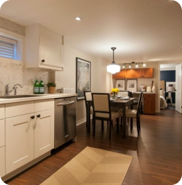 Whether you’re envisioning a modern entertainment area, a custom wet bar, a home gym, additional bedrooms, or a fully finished legal suite, our in-house team brings your vision to life with precision, professionalism, and attention to detail at every stage. From insulation and soundproofing to lighting and layout design, we treat every basement like it’s a true extension of the home — and every client like family.