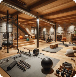 Dedicated workout spaces with durable flooring, wall mirrors, custom storage, and proper lighting. Designed to be functional, motivating, and seamlessly integrated into your basement layout. - Custom Storage & Built-Ins